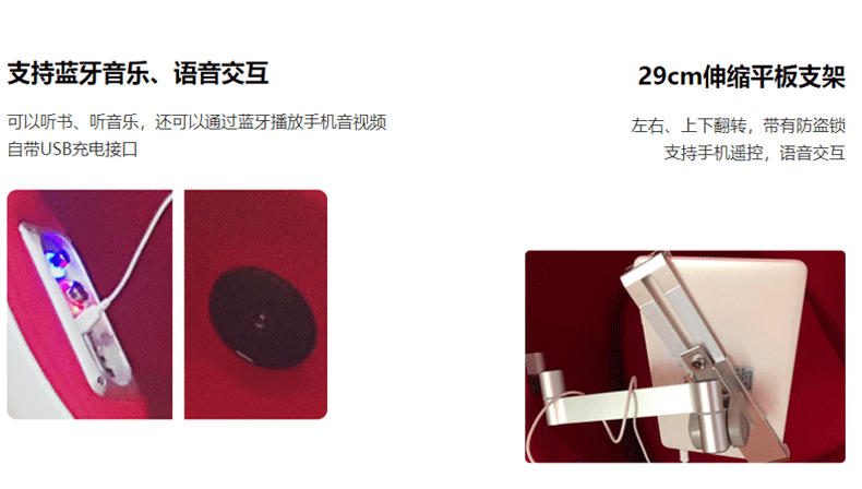 產(chǎn)品特點:浩田視聽休閑太空艙可以閱讀數(shù)字書報刊,也可以聽書、聽音樂,也可以看視頻課件等,還可以通過藍(lán)牙播放手機(jī)音視頻。讓讀者在這又酷又炫的太空艙體驗感知新科技、新數(shù)字、藝術(shù)化的數(shù)字體驗空間。