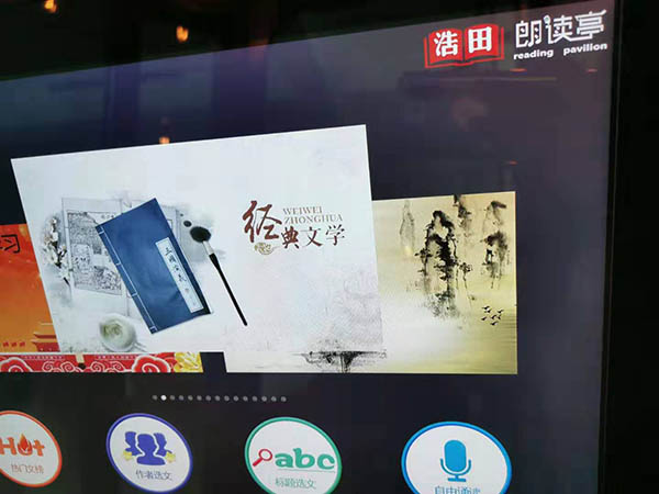 掃碼登錄朗讀亭后,首頁會有完整的資源展示以及頂部的資源分類,目前朗讀亭素材資源庫共有14大類。
