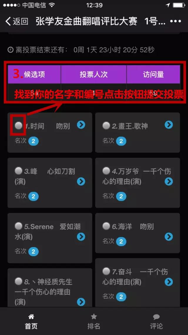 參賽選手投票編號