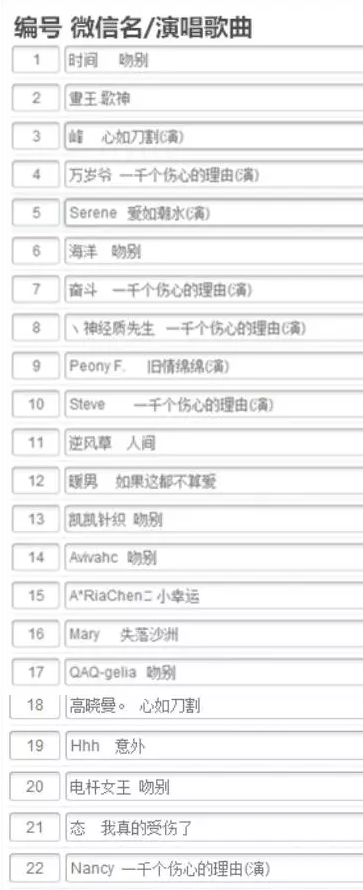 (請按照所錄點(diǎn)唱機(jī)的編號順序找自己的對應(yīng)編號)