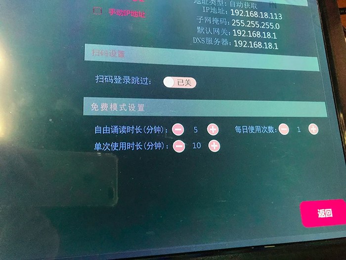 朗讀亭計算使用時長,可以設置免費模式和收費模式,收費時間自由設定。