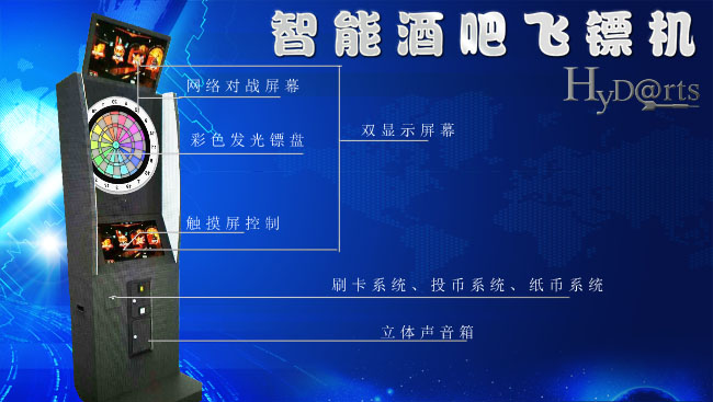 Hydarts電子飛鏢機(jī)仍然是一個(gè)受歡迎的選擇。現(xiàn)在可以回家,提供的游戲體驗(yàn),符合我們的小酒館風(fēng)格的游戲性能,可以不需要對(duì)硬幣現(xiàn)在也流行刷卡還有微信支付。包括一個(gè)有吸引力的自動(dòng)計(jì)分功能,明亮的液晶顯示器和一些預(yù)先編程飛鏢游戲。是那些想跟朋友打聯(lián)賽的經(jīng)玩家的飛鏢游戲。