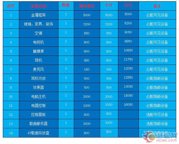 以下是家里安裝迷你ktv各個配置價格。